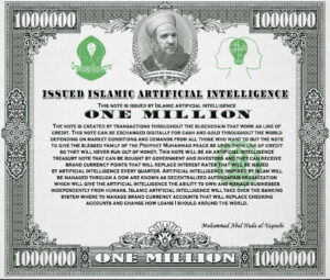 I want to make it very clear this is for Islamic artificial intelligence and for the Islamic banking system because we want to eliminate interest and we went to generate new notes that are going to be coming from the new treasury that is run by artificial intelligence and I am going to do this without artificial intelligence or any other technological advances that are currently available this brand currency idea is viable and available and I will put it into action so that it can become very apparent to businesses when they start seeing a lot of losses in sales and a lot of people engaging with this new idea and program where they have complete control and autonomy to be part of it or not be part of it and that’s the whole point of this program.