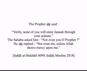 This should not be confused by people because you have to do good deeds and you have to do them consistently to receive Mercy the message is that those who depend on the actions and use their actions to discriminate against other people telling them I’m better than you I believe in this or I believe in that all your good deeds and nothing we are the best we are the chosen ones this statement literally destroys everyone and turns them into dust but we need to remember the teaching of the prophet Muhammad peace be upon him where he said also.